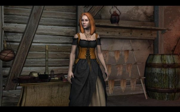 My inspiration began with a screenshot (image #1) and extracting the character textures to see details better. At the time I was also working on my collection of Witcher Sims 2 skins, so I had all those texture files saved up, which came in handy to see how Abigail’s necklace actually looked like up close (image #2).