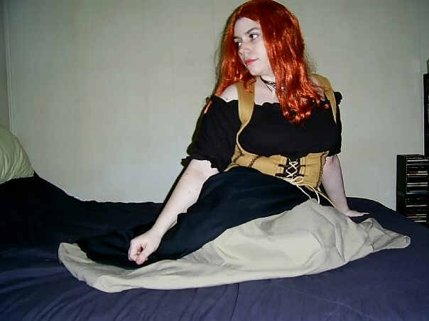 I also looked online for a corset pattern, and then an actual corset since I figured there was no way in hell I could figure out the pattern and measurements. I was lucky to find a medieval tavern wench costume (image #5) that looked almost identical to Abigail’s outfit in style, but not so much in color. While it was a bit expensive ($130, plus an arm and a leg for shipping to Canada), it was worth it. The corset was pretty much the same, aside from the cut-outs, which I decided not to make in fear of ruining it all.