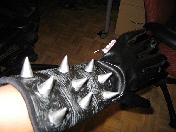 Gloves with spikes were a problem too, and everything that had actual metal spikes was either impossible to import due to the dangerous nature of the item (not to mention illegal to wear outside around here), or too expensive to ship due to weight. I settled for the next best fake thing, and with Minna’s help and a $20 Amazon gift certificate I had saved up, they were free: official Ghost Rider gauntlets (image #10)! A little big for my hand but whatever works, I say!