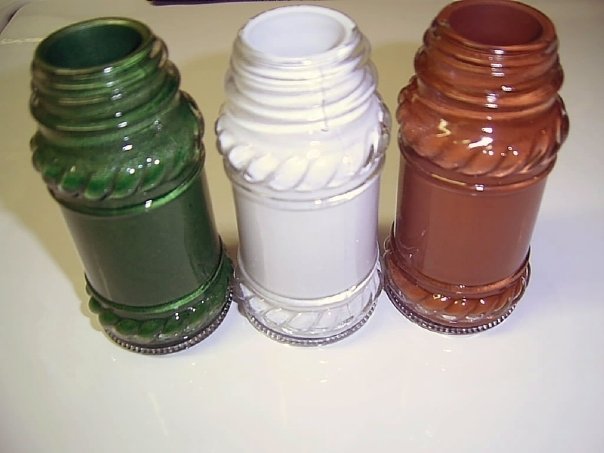 Also from the dollar store came my “potion bottles” (image #4), which are actually salt and pepper shakers (so, 2/$1). With some more acrylic paint (another $2), and painted from the inside out, I left my shiny potions to dry overnight. Small issue though, the metal lids had holes and the corks I had wouldn’t stay on. So, I used more of my flour and glue paste to cover the holes, and painted the lids brown.