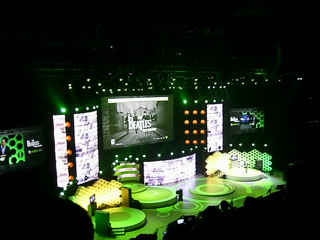 The show began with the opening cinematic for The Beatles: Rock Band – which was great in itself, moving on to a demo of the actual game in action. The major difference here is that you can have up to three people singing now, with three individual voice bars appearing on the karaoke bar on the top of the screen. There are extra bonuses for when the singers are in perfect harmony (Triple Fab, Double Fab), similar to the Unison Bonus we already know.