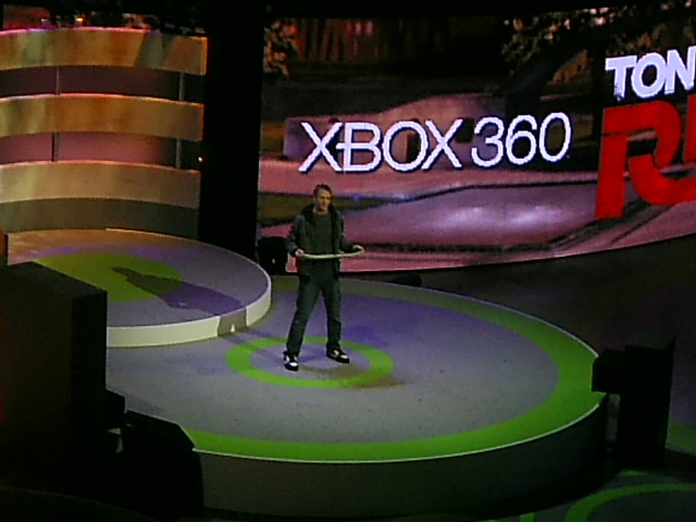 Tony Hawk presented Tony Hawk Ride and the new motion-controlled board, which offers intuitive controls for players of all skill levels. We will no longer play Tony Hawk by pressing button combos, but by stepping onto the skateboard deck and doing the movements ourselves with out feet. I’m guessing this is another way to land me on the floor, but should be a lot of fun.