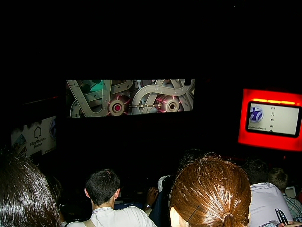 Hooray! We moved ahead of everyone to find tables, seats, an open bar and food. Lots and lots of food! Woot! Thank you Sony! I grabbed a yogurt parfait, some quiches, and the most awesome chocolate cupcake ever. Shortly after licking chocolate icing off my fingers, a voice announced that we should proceed into the auditorium and “don’t forget to pick up your 3D glasses on the way in”. 3D glasses? We were in for a treat!