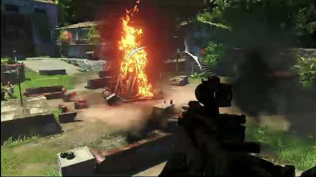 Moving on to some naughty bits from the FarCry 3 trailer, boobs, nipples and all! I am amazed at the lack of censorship, thinking back of how The Witcher a few years back had nipples magically erased from the collectible cards… But here is this tribal lady baring it all (well, at least the top), explaining that your tattoo has special powers – the power to undress the ladies, I thought! Smart-ass remarks aside, FarCry 3 looks interesting. Jason Brody seems invincible as he takes down a camp full of mercenaries with knives, bows and gunfire, and bonus feline help. Then mortality hits him, as main bad guy Vaas stabs him. The following moments look like hallucinations just before he blacks out. Way to leave us hanging!