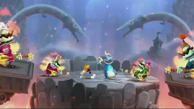Rayman Legends for WiiU looked like a fun game to play, supporting up to 5 players. The WiiU GamePad is used manipulate and rotate platforms on the TV screen, and the game offers different types of gameplay, and we watched as the traditional platformer with some Sonic-inspired sequences turned into a rhythm game.