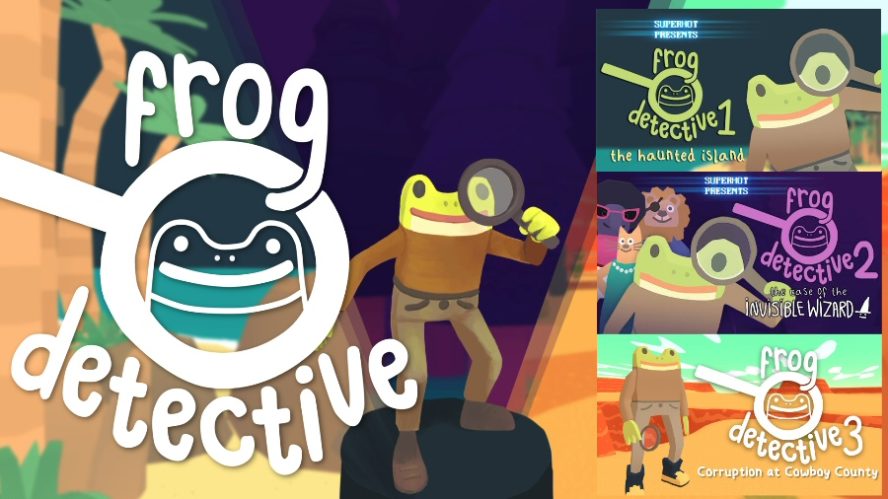 Frog Detective: The Entire Mystery contains all three Frog Detective cases: The Haunted Island, The Case of the Invisible Wizard and Corruption at Cowboy County. These are fairly straightforward 3D adventure games with a good dose of humor, but should you feel a little stuck, here is a walkthrough for all three cases. The golden rule: be sure to talk to everyone about everything!