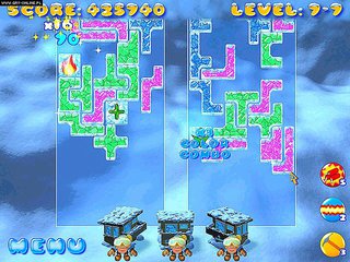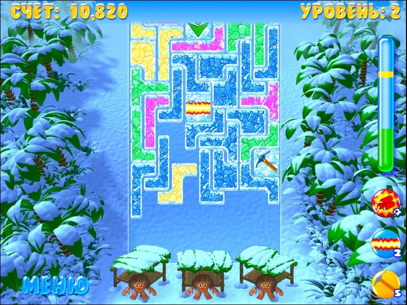 Avalanches may contain some useful pieces. If you match the blocks containing “specials” you won’t accumulate them. Instead, you have to isolate them so they melt. The specials include fire barriers that when used melt every ice block from the bottom to the top of the board, dynamite to break ice blocks into tiny pieces (not as helpful as you think since you end up with odd shapes) and ice picks to destroy blocks of ice.