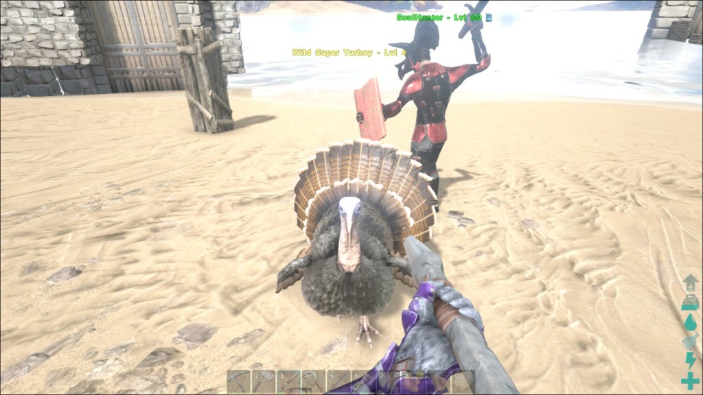 The PVP experiences (yes, plural, since we actually tried in two servers) weren’t very productive. Every day, we’d log on to destroyed fences, walls, dead animals, ransacked bases. At one point, we gave up on it, since there was even some serious hacking going on where someone had a army of t-rexes just demolishing everything in their path. In PVP you can just attack anyone, kill whoever you find unconscious on the floor and take their stuff, as well as destroy any structure that isn’t yours. Obviously, PVP is made for cooperation, where tribes attack tribes in full blown wars. And that is definitely not for me, since I kept seeing it as wasted progression.