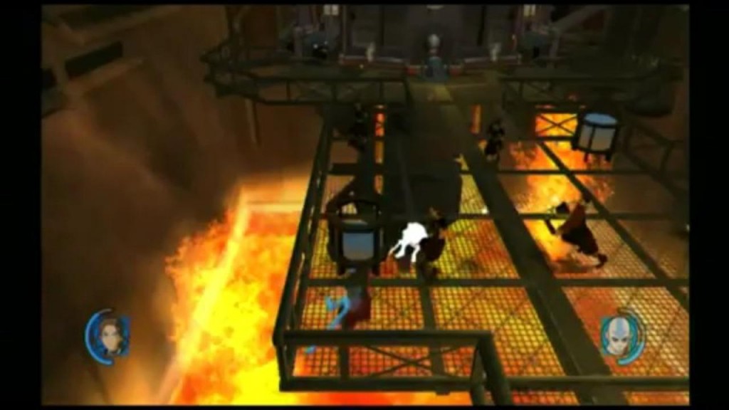 Gameplay is level based, with two playable characters, Aang and a friend, being available in most. Switching between said choices is achieved with the simple press of one of the directional buttons, allowing you to switch between characters on the fly, especially helpful in instances where one character is low on life.