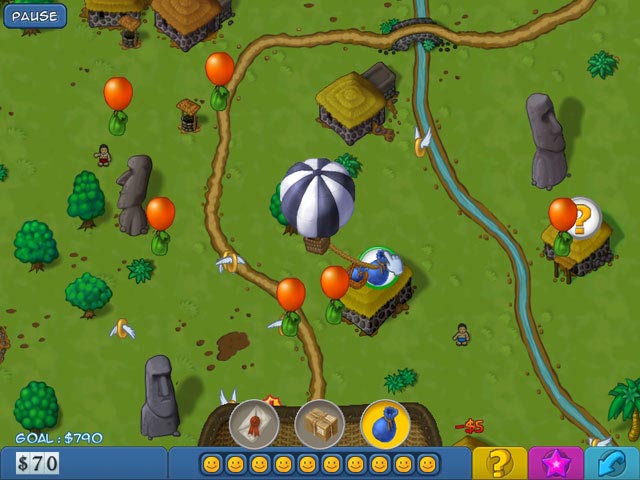 The storyline is presented in a cartoon storyboard, much like in Diner Dash. You learn that Amelia’s father is having some financial difficulties and will eventually lose their house if he doesn’t pay a certain amount of money by the end of the month. Amelia can’t just sit and let that happen, so she puts their old hot air balloon to good use by starting a delivery business.