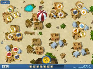 The game mechanics are very simple, and all you need to play are sharp eyes and a quick hand on the mouse. As the balloon floats over the villages, you have to have to check each house that comes in sight by clicking the question mark. That in turn reveals the type of package they want delivered. To deliver it, select the matching package from your inventory and click the house again.