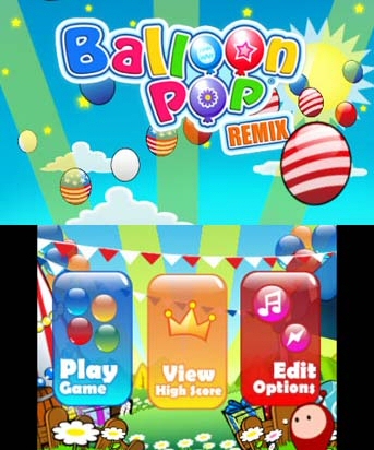 Balloon Pop Remix comes with three different gameplay modes: story, endless and puzzle. The story mode is incredibly shallow and exists solely to give you goals while playing. In each stage, your goal is to survive long enough to allow your colorful character to walk to the far right side of the screen, with its movement pace being determined by your own actions. Your character and the progress bar are held on the top screen, with 3D effects that are lackluster at best. There’s nothing really extraordinary here, as flowers, bushes or other shapes simply appear to be in the foreground, while the sky and clouds appear farther back.