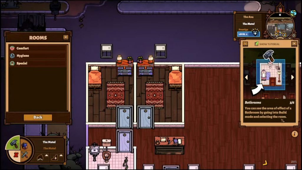 As you complete quests, you receive useful trinkets that will help you out along your journey. For example, the compass shows you the local map, the thermostat tells temperature, the pager allows you to accept guest requests and allocate them to rooms without going to the reception desk, and there are even inventory upgrades so you can store and carry more items.