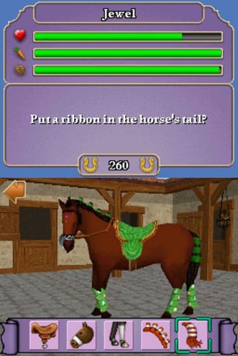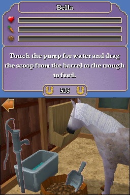Gameplay itself is simple. After receiving your first horse, you will be tasked with taking care of its basic needs, including feeding it, grooming it, and making sure it feels loved. This portion of the game is quite similar to the gameplay found on the Bella Sara website, but with a few key differences that take advantage of the Nintendo DS’s touch screen capabilities.