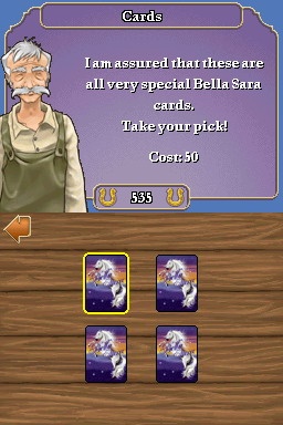 Furthermore, the shop also contains various extras such as new clothing for your avatar, and random Bella Sara trading cards, which can help you to complete your card collection. Also helping on this front is the ability to trade cards with friends via wireless multi-card play, which allows you to trade as many of your cards as you wish with friends who also own the game.