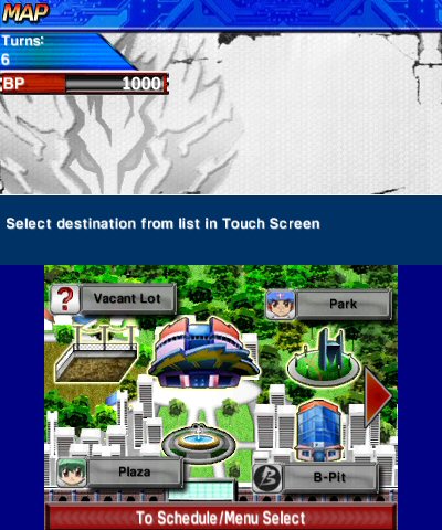 Beys have stamina, which is shown on the top screen, and is basically their health. They are powered by Spirit, shown in a meter on the touch screen. To use it, you must aim at your Beyblade and fire to give it a boost in power and attack. Waiting for the right moment to do this and aiming properly can even send your opponent out of the arena. You then move the Bey by tilting the 3DS. Spirit gradually increases and levels up, and just as you can use it, so can your opponent, so judging when to use it is the difficult decision sometimes. So even if there is some strategy involved in these battles, there is a lot left to chance, which makes them somewhat unpredictable.