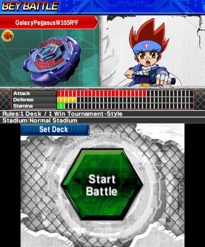 The game also makes use of the wireless capabilities of the 3DS by adding a local single-cartridge multiplayer and a Street Pass feature that allows you to replay and view the battles. You can head on to Bey Battle Mode to play local battles, a data battle against characters you have already encountered, or Survival for the chance to unlock rare pieces.