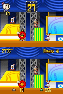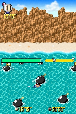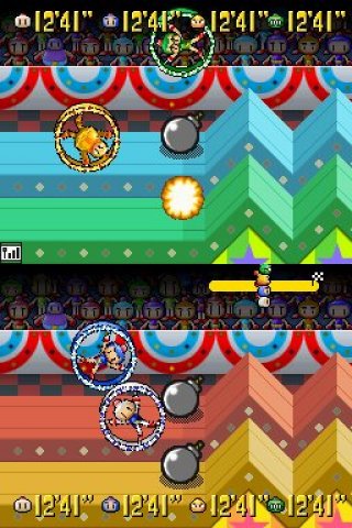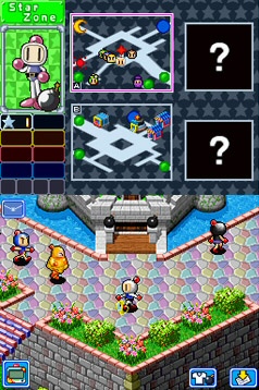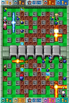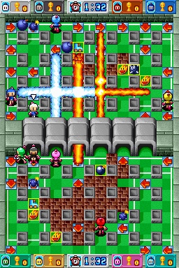 Single Player Battle can be played against up to seven AI opponents or you can pick Multiplayer Battle and go against real ones. You can either join a game or host your own, wirelessly or via DS Download Play. There is a Friend Battle where you can create a game just for users on your friends list, and the Bomb Dojo where you play against anyone else who is online, either in World Battle (worldwide) or Domestic Battle (country-wide).