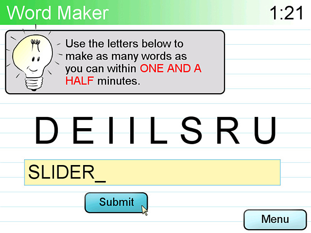 After each activity, you are given a grade which goes on your overall report card. Using this report card, you can keep track of both your overall progress (on a daily basis or longer), and your progress on each individual activity. However, grades are much more complex than simply grading your ability to answer questions correctly, as the time it took you to answer each question also comes into play. That is, if you only complete ten math problems in a minute and a half, you are going to receive a lower score than if you completed 20, even if you got all ten questions right.