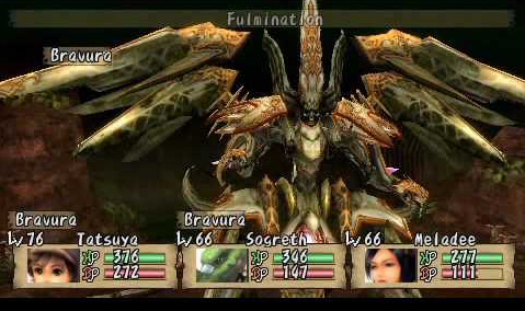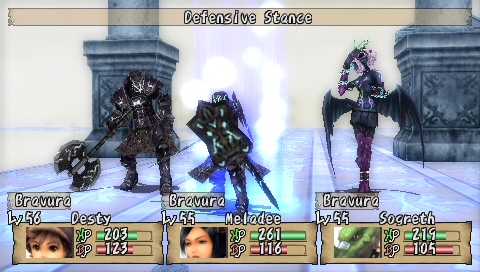 Battles are your traditional turn-based RPG combat. Your party has regular attacks, Bravura attacks and Unity skills. Bravura are special attacks and they use BP (Bravura Points), which you get by attacking enemies, and everyone’s skills are different. Some are more powerful than others, some are pure attack while others have specific effects like poisoning or being always a critical. Tetsuya won’t be able to use Bravura until he finds his first gem though.