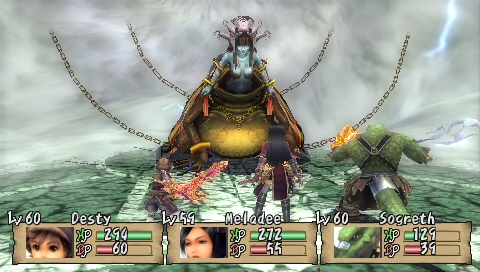 I especially like the overall look of the game, and couldn’t get over how cute Yuno’s ears are with the little occasional twitch. Every character is extremely detailed and the animations in battle are very well done. The world map is actually fairly simple, but the towns and dungeons have interesting designs and textures. And the monsters are fairly original too and stray from the usual giant rats and giant spiders that we see in every other RPG.