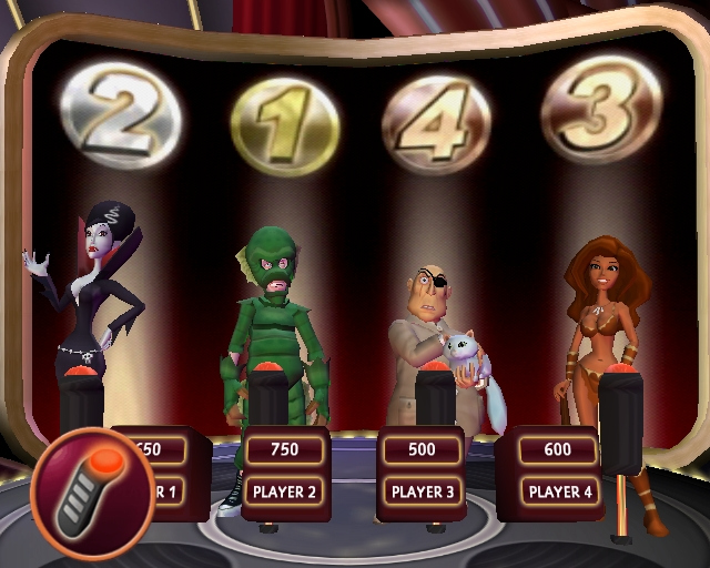 First, the set is different, reminiscent of a red carpet/awards ceremony and Buzz sports a new outfit. Then, there is a handful of new characters to select: the creature from the Black Lagoon, a cute brunette girl, a vampiress, a muscular guy much like Rambo.