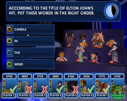 Buzz! The Mega Quiz is definitely a party game. You can have up to eight people playing if you have two sets of buzzers, making up for some pretty noisy party game sessions. It may look fairly simplistic in the graphical department, but it is designed to be a game to play among friends and family and most of all, a fun one.