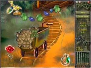 The mechanics of the game works a bit like Zuma: pieces will flow from the bird to the chameleon, and if they reach it, the game ends. This is where the Puzzle Inlay gameplay comes in, you pull the pieces from the chain and place them on the mosaic grid. You can rotate them by right clicking to find more appropriate positions for them.