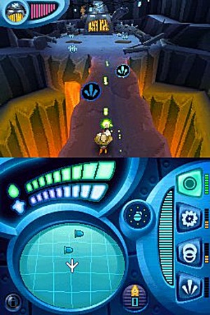 Graphically, the level design is pretty linear, but the environments are nicely done in full 3D. I did experience some glitches though, random black horizontal lines on the top portion of the top screen. The cut-scenes have some really nice artwork as well.
