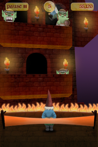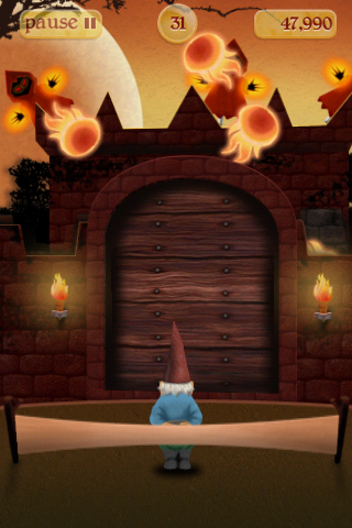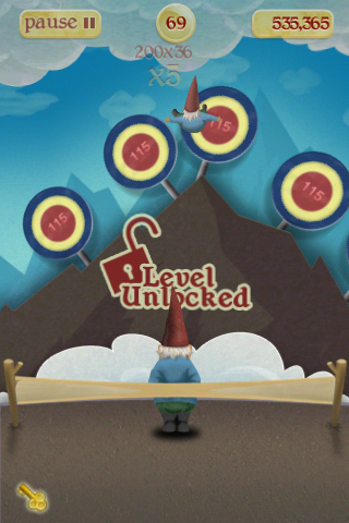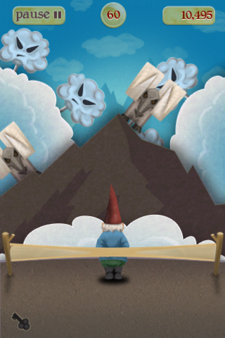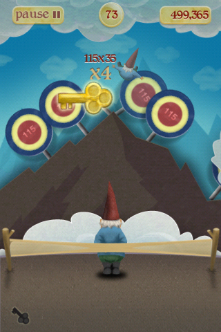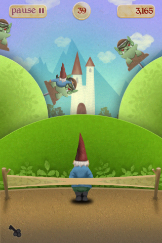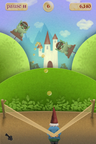 So you have a gnome, donning cool shades and a giant grin, floating in the air by an idyllic backdrop of hills and the occasional enchanted castle. Of course what you will find out soon is that this is a game that involves flinging these cute gnomes with a giant slingshot at various targets. It’s reminiscent of old-school carnival games where you are shooting targets held by sticks and attached to a conveyor-belt mechanism. The well-designed backgrounds and creature graphics also give a very polished feel, and definitely invokes the feeling of shooting paper targets, but in a fantasy setting.