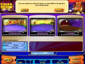 More strategy and less gameplay, that’s how Cinema Tycoon Gold really could be presented. It all comes down to picking an efficient strategy (movies that are hot, upgrades, add-ons, staff training) and just hit the “start” and “skip” buttons to begin and end a business day.