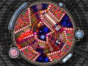With so much going on in a small package, training levels are a must, and have graciously been provided to help players get the hang of the unusual gameplay here. Using the mouse, you right click and drag your mouse in either a clockwise or counterclockwise direction to spin the circular game board, setting the orbs into motion. Most levels contain some sort of stationary barrier that blocks the path of the orbs, requiring you to think ahead before rotating the board.