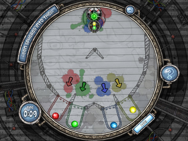 Each level is timed and ends when the set goal has been completed. Goals vary greatly, and can be something as simple as eliminating all of the green orbs by making them touch (thus clearing the group from the board) or can be as complex as moving a large group of small metallic balls into a hanging container by using magnets to help draw the orbs up the screen.