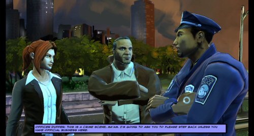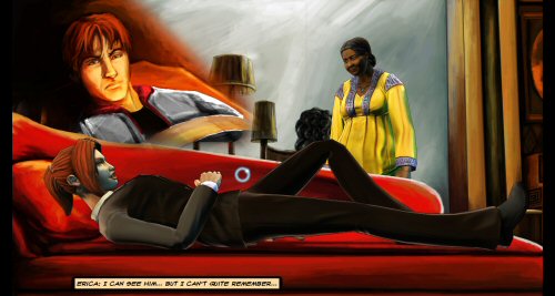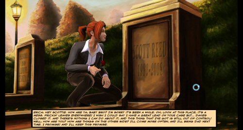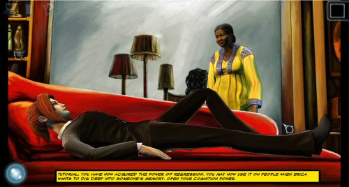 Unlike in most adventure games, the story in Cognition isn’t linear. Certain conversations open up different options, and even some actions can alter the relationship between characters, or make a difference between moving on or game over. My Erica died within the first hour of gameplay due to my inability to respond to a quick-time event, of sorts. So be advised, sometimes what seems like an action sequence that you just sit back and watch, is not, and you are still able to click things. Pay attention to your cursor for changes in shape, so that you know when you’re able to act again. Fortunately, when you die there is a retry option that places you at the beginning of the crucial scene.