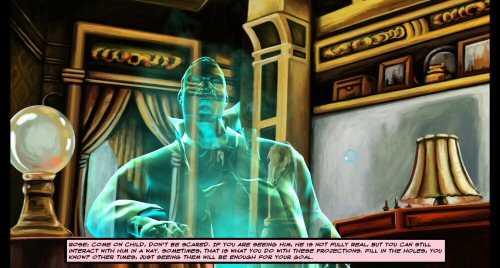 This ability also shifts the adventure game into more of a puzzle. When you click the cognition sphere, certain objects in the scene will show a sort of haze. You can focus on these items to learn more about what happened to them. Sometimes you must focus on more than one thing at once to get results.