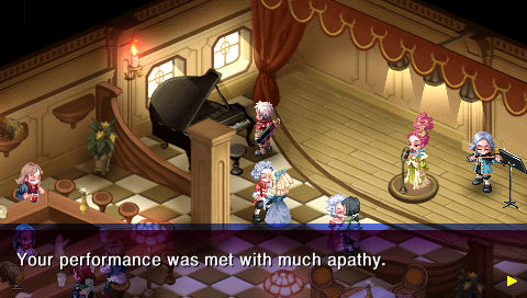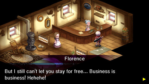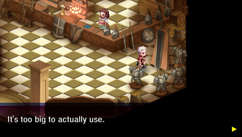 The game makes up for a short track list with its stunning visuals. The cute, big-headed sprites look right at home in the colorful, varied environments of Latein. During the dialogue you’ll also be treated to beautiful hand-drawn images of each major character. The monster models are varied and colorful, a nice change from the all-too-common differently-shaded spiders and bears. In addition, the animation, especially for the combat abilities, is flawless, not to mention just plain fun to watch. Even while trudging through dungeons, setting every enemy on fire with a powerful Immolation spell always brought a smile to my face.
