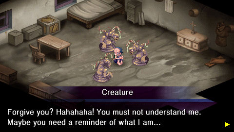 You won’t run across many surprises where the mechanics are concerned. The combat is fairly simple. During their turn, each character can perform a basic melee attack, use an item, prepare for an enemy attack, or expend mana to use a spell or ability. The abilities are trained through skill trees unique to each character using SP, of which a certain amount is granted after each battle. Before an ability can be learned, however, it must first be uncovered, also by using SP. A skill must be uncovered in order to proceed to the next in the tree, but once it is it can be skipped over without being trained. Most every character has a pretty wide range of abilities they can learn, so you can customize them to be as specialized or generalized as you like. SP is pretty abundant, too, so with careful planning it isn’t hard to get the abilities you want early on.