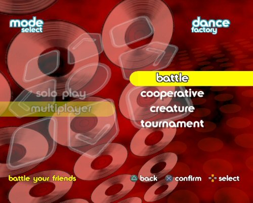 Dance Factory itself is a standard arrow four step with three difficulty modes. Hit the arrows in game mode, fitness mode, creature, multiplayer, EyeToy camera and record. Game mode is what limber 12 year-olds in arcades play worldwide but with the added bonus of using the shop as the game progresses. The more points you accumulate through dancing, the more entertainment possibilities with retina stimulating backgrounds and creature accessories. Fitness mode keeps a calorie counter based on your weight and changes the insults to something suitable for a dieter. Creature, in solo mode, just gives you a strange little dancing buddy to groove with you.