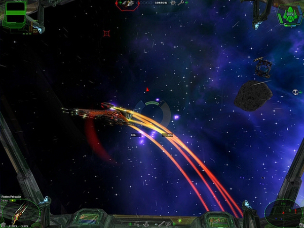The particle effects are very well done in the explosions, there is a good variety of ship models, and the colors and lighting effects are really good. I especially liked the hyperjump sequences and the cut-scenes that happen when you reach a new system. Plus, the story-based cut-scenes have excellent animation.