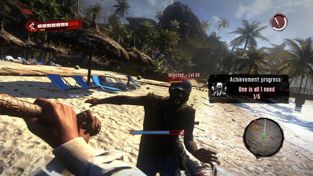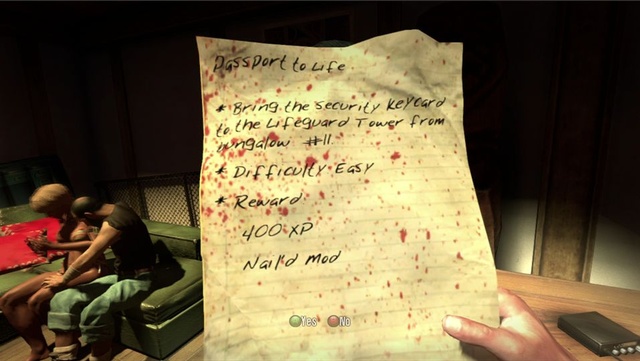 The gameplay is quest based, with various hubs of activity being scattered throughout the map. In between them lie deserted, open roads or beachfront cabanas where the zombies now wait to make you their next victim. You’ll travel these open spaces back and forth completing fetch quests, taking messages to other survivors and so on. None of the quests are particularly interesting, and some are so glitched that you’ll need to “luck” into completing them, or check an online guide to figure out the steps to take to avoid running into said glitch. It doesn’t need to be said, but that definitely shouldn’t be the case.