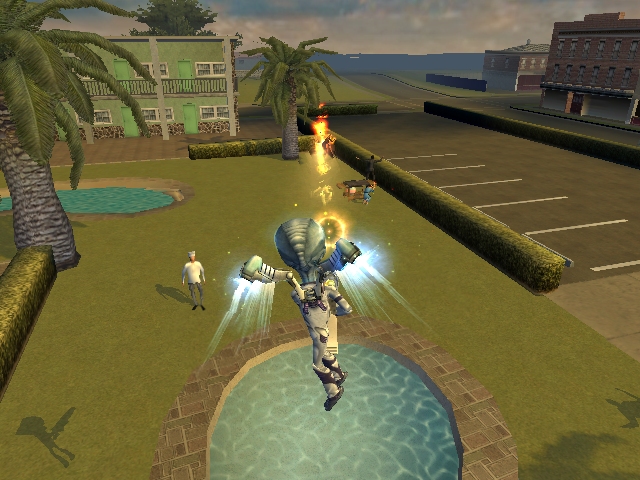You will find gameplay very similar to the GTA series. There’s a little radar, a wanted level meter (civilian, police, military and Majestic – the Men In Black kind of organization – awareness), collectible probes spread throughout the levels, and a bunch of optional missions to do resembling rampages.