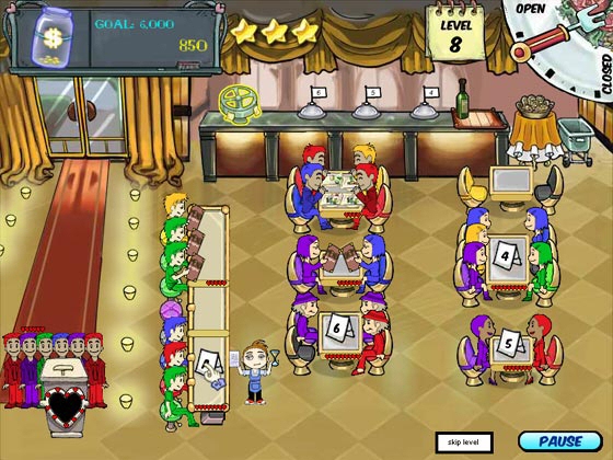 If your customers happen to become extremely unhappy, they’ll get up and leave. Keeping an eye on their moods is a sure way to keep things running smoothly. There’s a little heart meter on their tables to help you see how much they like you and your business. Being quick in seating and serving them will make them happy. Bringing them drinks and seating them on the respective colored seats is the little “happiness bonus”.