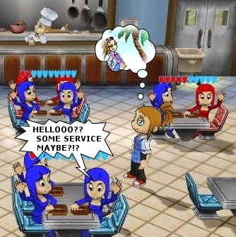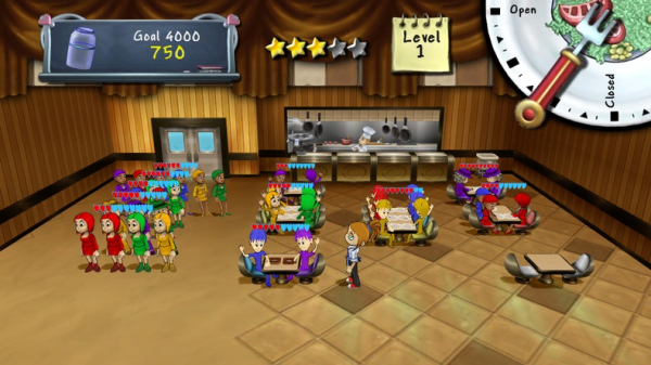 Graphically, the game does look much more colorful now, and the perspective makes it look 3D-ish, but doesn’t do much for functionality. The spacing between the tables just doesn’t seem to be enough to move around efficiently. I also found that the animations for being ready to order or asking for the check were fairly easy to miss when the tables are crowded.