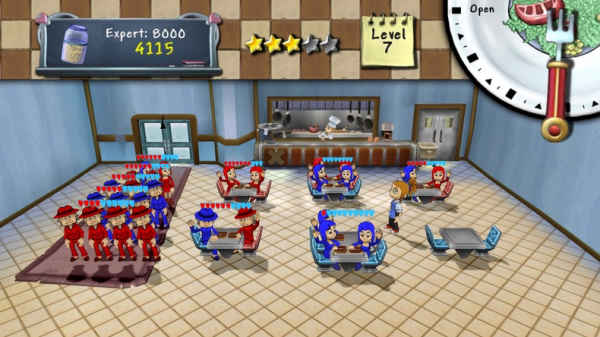 Other than that, you must physically control Flo’s running around to the tables with the left analog stick, which wouldn’t be so bad if there was more space between the tables. As it turns out, it’s pretty easy to get stuck in the middle of the serving rush.