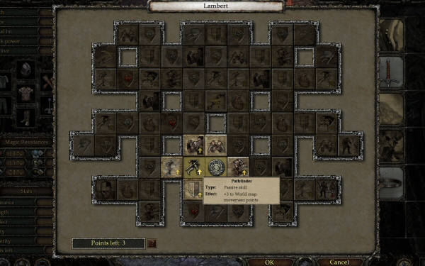 The levelling process is interesting, and spending skill points in the “skill tree” board always offers choices in terms of how you want your character to grow. You can gain new skills or increase your attributes, depending on the “path” you choose in the board.