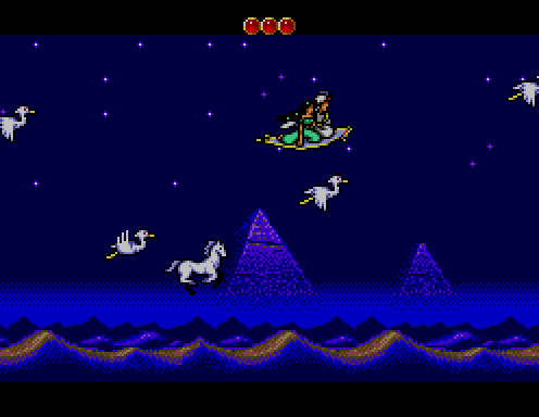 The game is very easy to control, which makes it accessible to everyone. Each of the buttons performs a task (jumping, swinging the scimitar, throwing an apple), while running is done via D-pad.