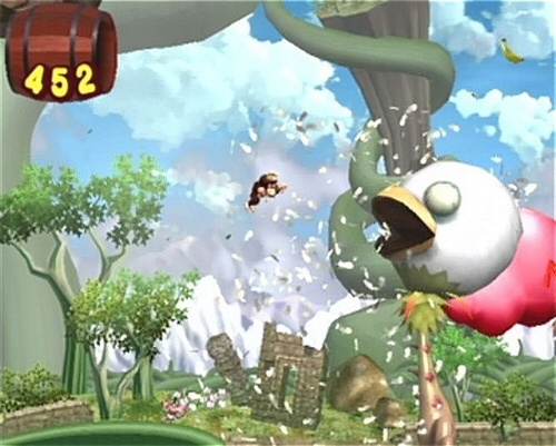 Before I begin my critique of Nintendo’s Donkey Kong: Jungle Beat, I must in fairness make a confession: I have never been at any time a fan of 2D side-scrolling adventure games. Even back in the genre’s heyday, I managed to avoid the keep-going-right Super Mario gameplay of the 80’s by purchasing a Sega Master System and enjoying that console’s exciting racing, sports, and puzzle titles.