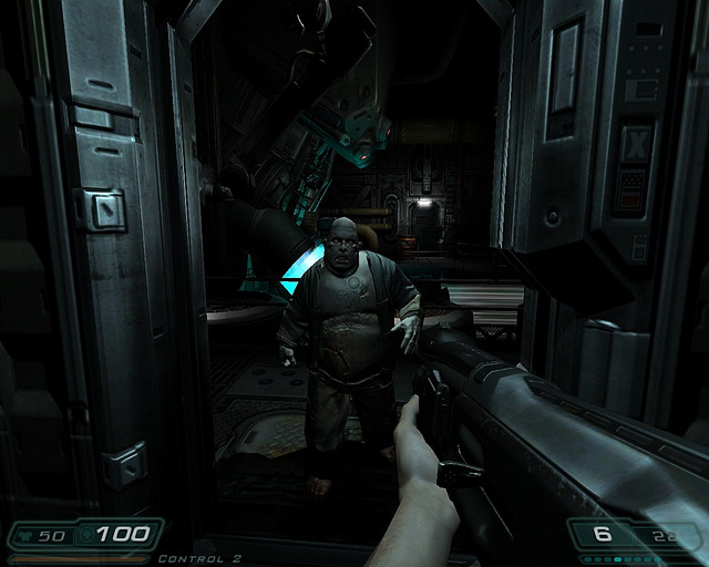 My attachment to first-person shooters began with the cries of ‘Mein Leiben!’ and was cemented with Doom. I played it with skins, without skins, I could play for five minutes or five hours. I played it on every difficulty and discovered everything about every level. Doom was mother, Doom was father, Doom was all. So it was with grand anticipation that I looked forward to the arrival of Doom 3. I had to wait a little longer than the PC release due to the restrictions of my 1.4 gig processor. After the proven ability of the XBox as a home for first person shooters I knew a release was to come along eventually. Just before I was ready to eat my own arm off for entertainment, it was on the shelves.