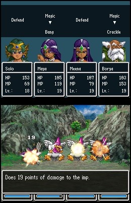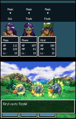 The gameplay revolves around turn-based fights, a trademark of RPGs. Your party can have up to four active members in battle, but everyone will get the same amount of experience. You issue basic commands from the menu, such as attack, use magic or item, but unfortunately this is all done via the D-pad and buttons. The game offers no use for the stylus whatsoever, which is a shame. You could have at least used it to move your characters around the map and tap through menus.