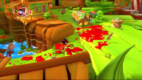 Fairytale Fights has a fantastic premise. Take everything that is good and wholesome about a childhood fairytale – the gumdrop forests, the princesses who are rescued by stunning princes, the now living but once inanimate objects – now cover it with thousands of gallons of blood. Take that pure storybook experience and create a world where iconic characters like the Fairy Godmother and Pinocchio are now corrupt and evil, and where Snow White and Little Red Riding Hood run around chopping pink bunnies in half with garden gnomes. After doing all of that, add in poor level design, an atrocious camera, a few widespread glitches, plus online lag and you have Fairytale Fights in a nutshell.